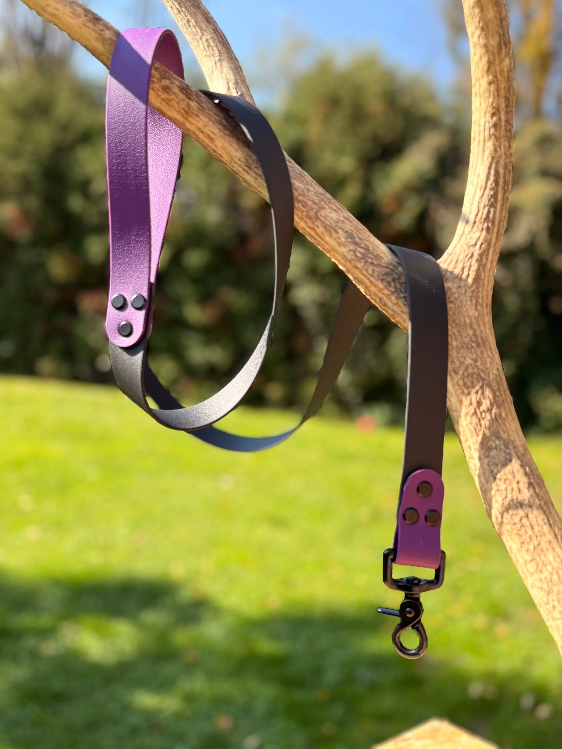 Son design bicolore reflète la complicité entre vous et votre compagnon : deux personnalités, un même chemin. Le mousqueton robuste assure une attache fiable, tandis que la texture douce et flexible du biothane offre une prise en main confortable.